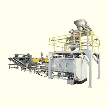全自動(粉料)給袋包裝系統主要針對化工、食品等行業而研制的新型包裝機組。該機組具有自動供袋、上袋、稱量、填充、封口等功能。可包裝物料如顏料、面粉等粉狀、超細粉料。